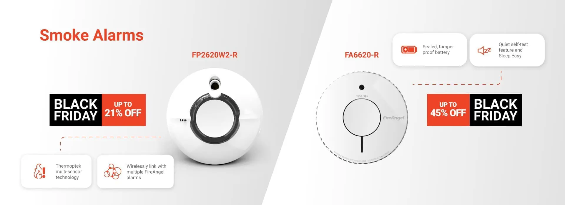 This includes saving up to 21% on the Pro Connected Smart Smoke Alarm, FP2620W2-R, which is battery powered with wireless interlink.