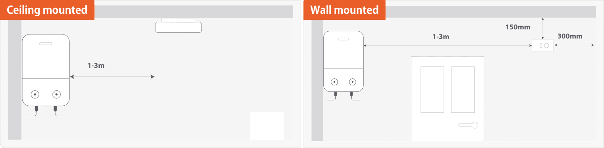 The alarm should be at a horizontal distance of between 1 m and 3 m from the potential source.