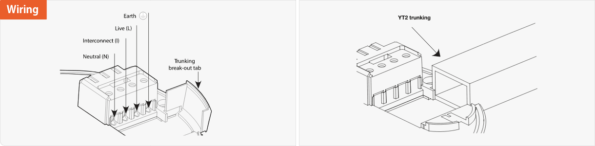 If trunking is required, snap the break-out tab away from the base plate prior to connection.