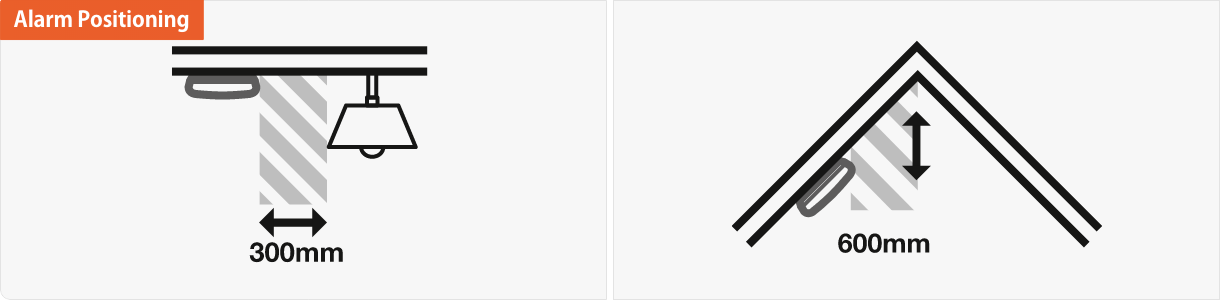 Heat alarms should be positioned at no more than 600mm vertically below the highest point in the room.