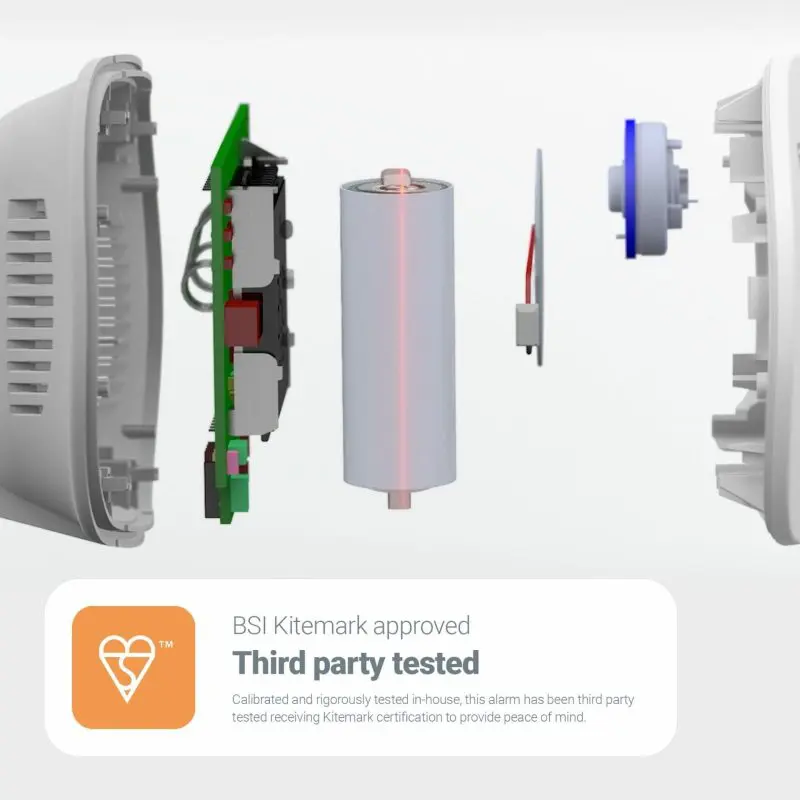 - A 10 year battery is sealed within the alarm which will offer protection for the lifetime of the device, without needing to change the batteries