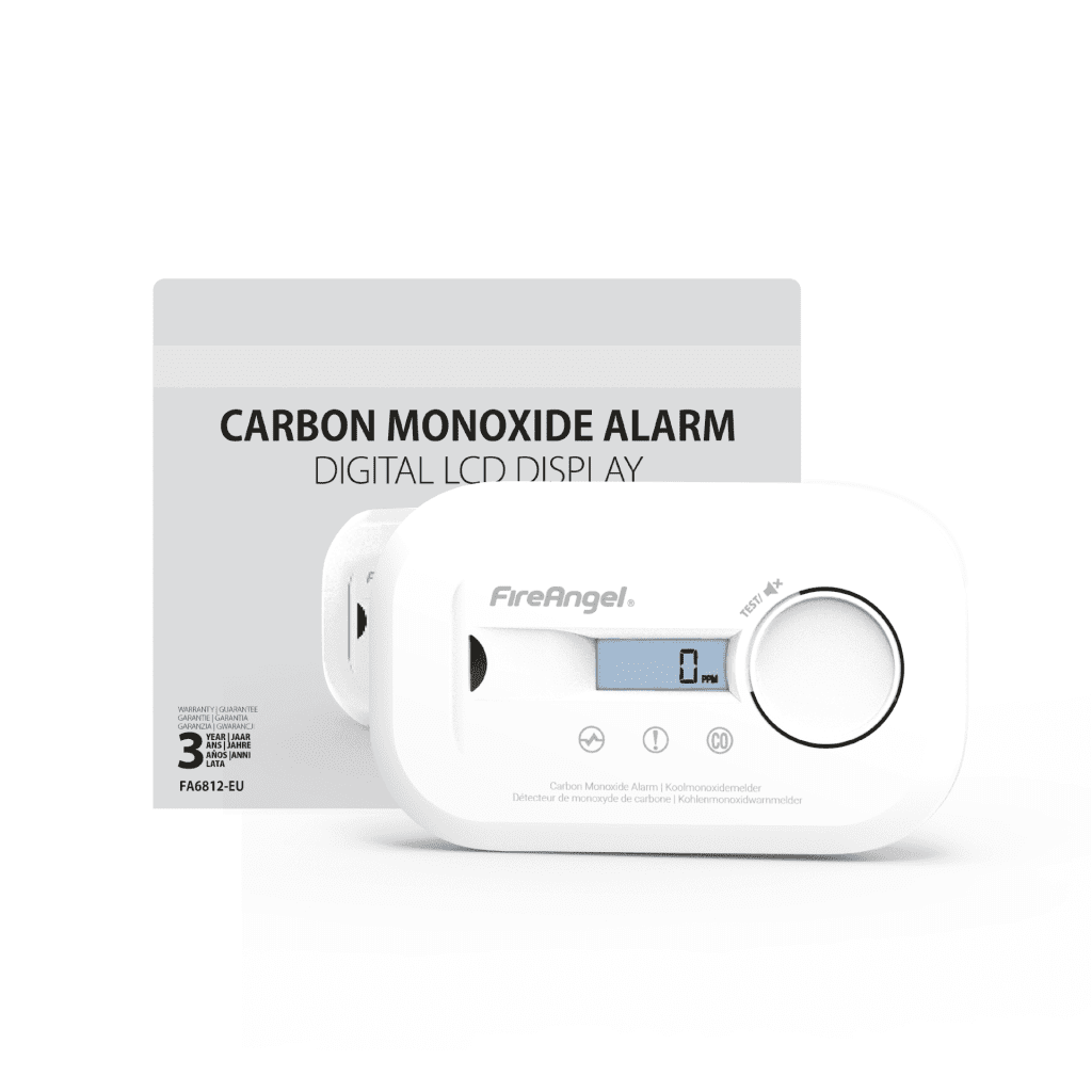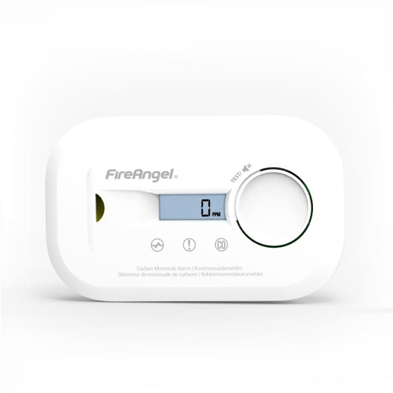 - Compact digital display shows CO levels and provides clear visual user instructions.