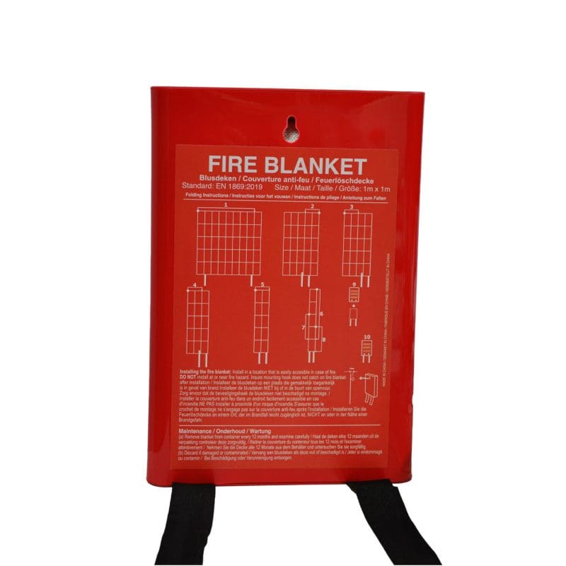 SPECIFICATIONS: Each fire extinguisher blanket measures 1 x 1 metre with a material thickness of 0.43 mm. It is crafted from a fire resistant fibreglass fabric with a working temperature of up to 550 degrees C / 1022 degrees F.